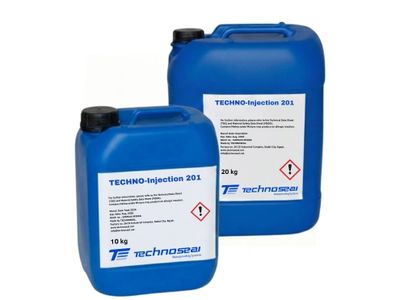TECHNO-Injection 201 is a dual component, slow reacting, elastic, polyurethane based injection resin. It hardens by the reaction of bothA and B components as well as with water or moisture in the environment.